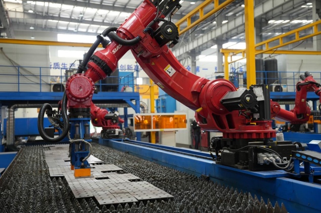 正全力推进空中大平台扶植,这里配备了钢布局行业智能化程度最高的智能无人下料出产线、机械人坡口切割工做坐和牛腿部件机械人拆焊工做坐,