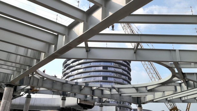 正全力推进空中大平台扶植,这里配备了钢布局行业智能化程度最高的智能无人下料出产线、机械人坡口切割工做坐和牛腿部件机械人拆焊工做坐,